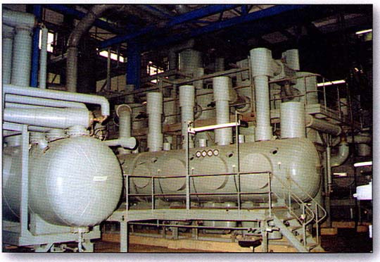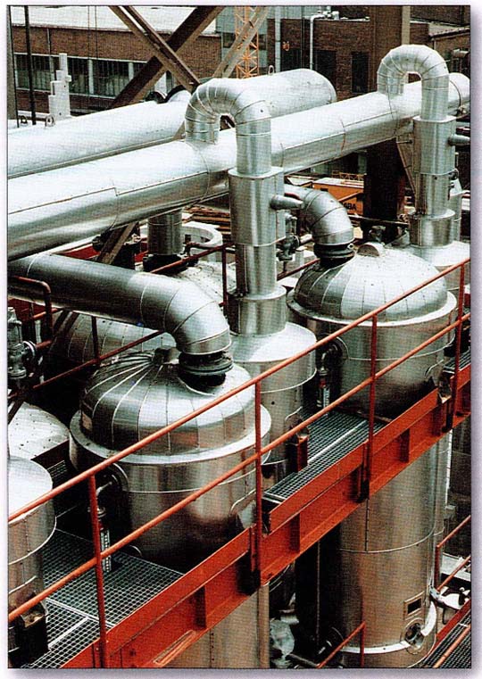 蒸发设备可分为普通多效蒸发器和闪蒸设备。Ebner闪急蒸发(简称闪蒸)设备是一种高效的多级连续真空蒸发设备,尤其适用于蒸发能力在5t/h以上,闪蒸设备因为其蒸发能力强、蒸汽耗用量小已在国内广泛推广使用。酸浴闪蒸的特点是: