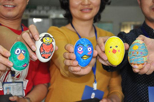 五月五日,立夏。一场生动有趣的画蛋比赛在总公司办公区举行。分别来自各部门的十多名参赛选手,各人领取一只白色大鹅蛋,用公司提供的水彩笔在蛋上现场作创意画。现场还邀约员工20名前来观摩选评。通过民主评选,最终选出了五只创意作品蛋,并颁发了精美礼品。