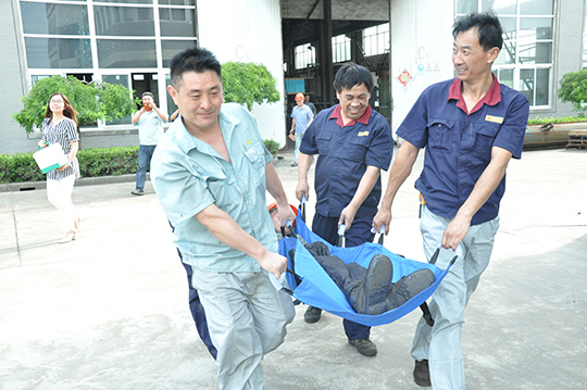 6月3日16:00随着总指挥葛峰副总的一声令下,演练正式开始。16:00浸渍车间发现热处理釜超压,立即启动应急疏散,各部门接到指示后迅速反应,有序地撤离到紧急集合点。