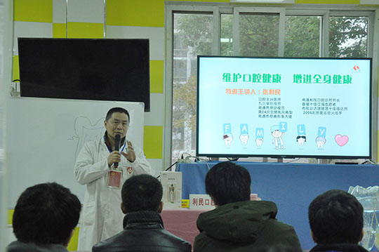 2017年11月16日下午,南通市著名口腔专家张利民主任受三圣董事长之邀,来到三圣总部,展示模型、剖面图表,就口腔保健的基础医学常识,用通俗易懂的语言,结合板书图示,全面而清晰地为众多职工进行了认真讲解,并指出民众多年形成的口腔清洁误区。讲座中一并传授了国际保健理念等方面的认知,也令听众耳目一新。