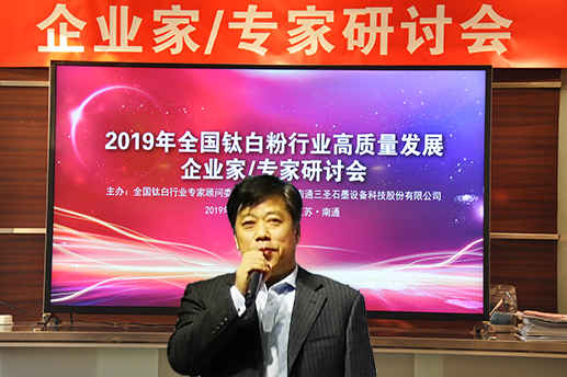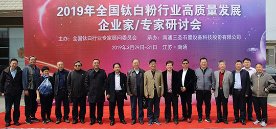 2019年3月29日至31日,2019年钛白粉行业高质量发展企业家/专家研讨会在南通三圣石墨设备科技股份有限公司召开,全国钛白粉行业来自四川、重庆、广东、安徽、江苏、浙江、甘肃等省、市的主要钛白粉企业的董事长、总经理或技术负责人、全国钛白粉行业专家顾问委员会的专家、国家化工行业生产力促进中心钛白分中心主任、钛白粉产业技术创新战略联盟理事长等近三十位企业家、专家、领导齐聚南通,聚焦钛白粉行业,共谋高质量发展。