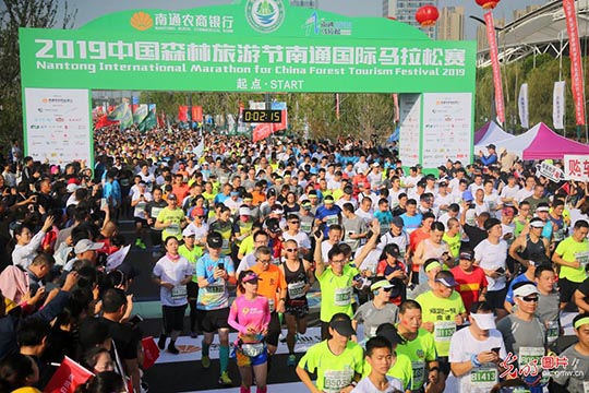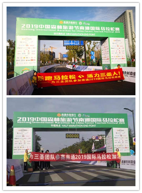 2019中国森林旅游节南通国际马拉松在南通体育会展中心南大门正式开跑!南通瞬间成为全世界最热闹的城市之一!此次国际马拉松赛是南通首次举办国际马拉松赛,也是南通有史以来举办的规模最大、人员最多的体育赛事。上万运动爱好者集结于此,一场展现毅力与勇气的战斗开启.南通三圣企业集团组织参赛人员与来自全国各地和肯尼亚、德国、英国等20多个国家和地区近15000名选手同场竞技,用奔跑共同迎接即将到来的2020年.激情洋溢的三圣跑团、以及热情奔放的三圣拉拉队成为赛场上一道亮丽的风景线。