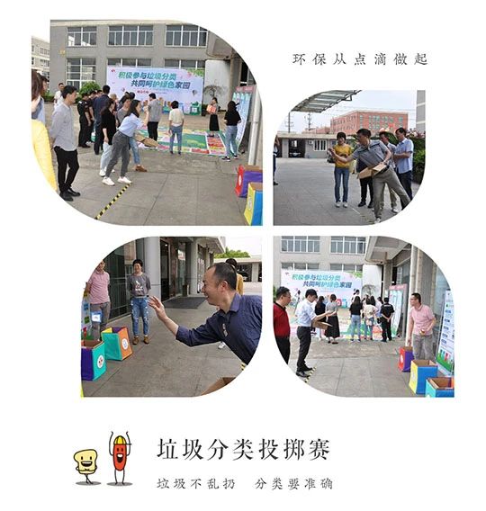 本年度的环保日主题活动,融汇了知识、趣味、合作、体育等多种元素,共组织了与垃圾分类相关的计时赛、投掷赛、飞行棋、知识竞赛抢答等四个项目,分区活动,并设有垃圾分类知识普及专栏展示区,供大家边玩边学边体验,从实施垃圾分类的重要性,到各种垃圾如何进行分类等方面,寓教于乐,引得阵阵围观:“这样的宣传方式既有意义又有趣,轻松易学,真是一举两得。”