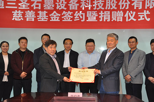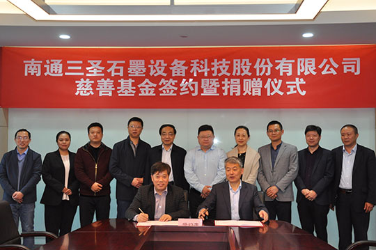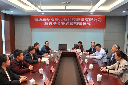 2020年4月21日,“南通三圣石墨设备科技股份有限公司慈善基金签约暨捐赠仪式”在南通开发区能达大厦401会议室召开,该项基金将主要用于开发区安老扶幼、助学助医、扶贫赈灾、助残济困、公益环保等慈善公益事业,推动该区慈善事业的健康发展。