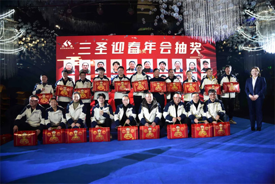 会场的三圣人很快乐,但也不能忘了依然在各个工地中坚守岗位的其他同事。通过现场视频联系,也向他们送去了新春的祝福。