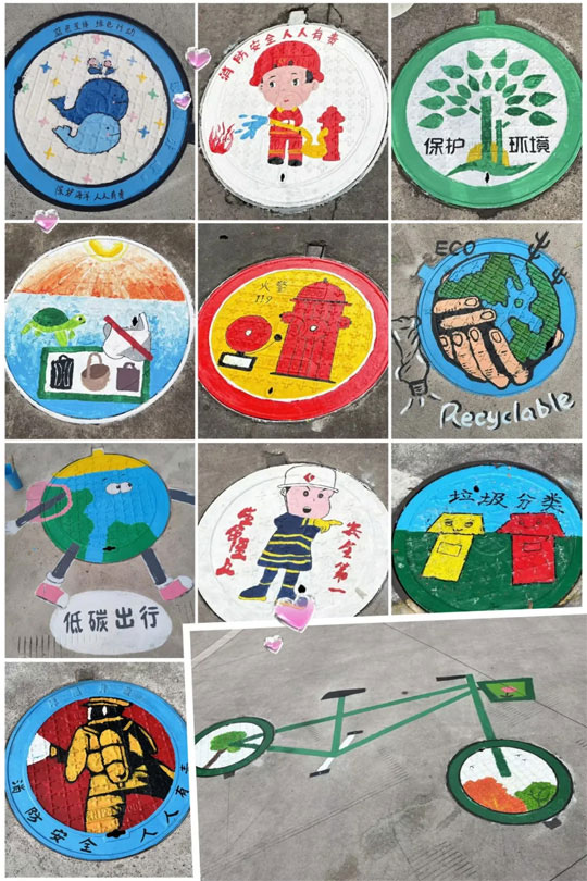 这一场别开生面的涂鸦大赛,为三圣园区添上一抹绚烂的色彩。随处可见焕然一新的井盖,是我们用画笔和色彩绘制出的一道道亮丽风景线,也是对加强安全环保意识及节能减碳的美好期许!