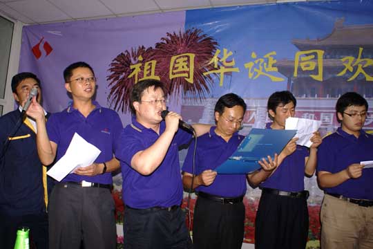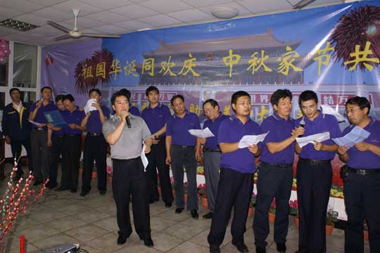 9月22日,全体三圣人欢聚一堂,同庆祖国华诞,共迎中秋佳节。感人至深的手舞《感恩的心》、诙谐幽默的小品《三圣家庭》、激情澎湃的诗朗诵《我的祖国》、独树一帜的三句半《话说三圣》以及相声、快板书等一个个三圣人自编自演的节目集中体现了三圣大家庭的企业文化精髓,同时表达了对祖国母亲的深深祝福。由三圣人自己点燃放飞的69盏祝愿灯将联欢会推向了高潮,大家祝愿三圣事业六六大顺,三圣好运长长久久。董事长带领高管团队合唱的一曲《朋友》充分彰显了三圣管理层的超强凝聚力和战斗力。晚会在大合唱《同一首歌》的歌声中圆满结束。