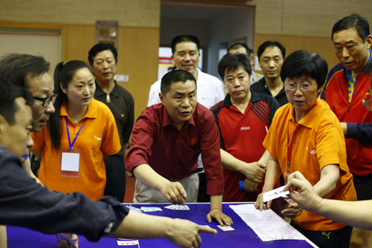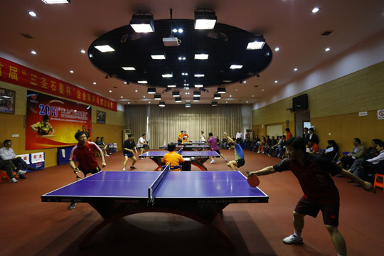 5月18日下午1点钟,初夏的南通笼罩在蒙蒙细雨之中,在市供电公司的乒乓球馆里,人头攒动,人声鼎沸,2013年南通市首届“三圣石墨杯”企业家乒乓球邀请赛在这里隆重举办。比赛现场集聚了相当实力的16企业乒乓球精英,更有一批通城顶级教练、陪练现身赛场,组成阵容强大的“后援团”,场面之壮观、竞争之激烈成为南通乒乓球赛史的又一新标杆。