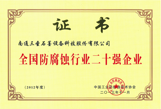 三圣成为行业内同时荣登 “防腐蚀行业二十强”、“非金属压力容器企业二十强”、“防腐蚀行业外贸出口二十强”三大榜单的企业